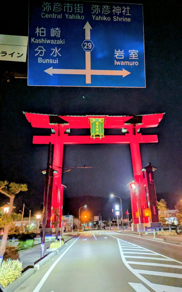 3/2(月)の午後、群馬から新潟へ駆け足で移動しました💦新潟での施術予約をギリギリでこなした後は、すっかり夜になっていました⭐ そして弥彦神社の大鳥居のあまりの大きさに、胸がざわざわとしました。 今回の遠征の宿泊先はすべてRVパークを利用しました。 新潟でお世話になったのは「さくらの湯」の敷地内の「やひこRVパーク」。 足湯があったり一人掛けのたっぷりした大きさのソファーがあったり、ごはんも美味しくて素晴らしかったです✨